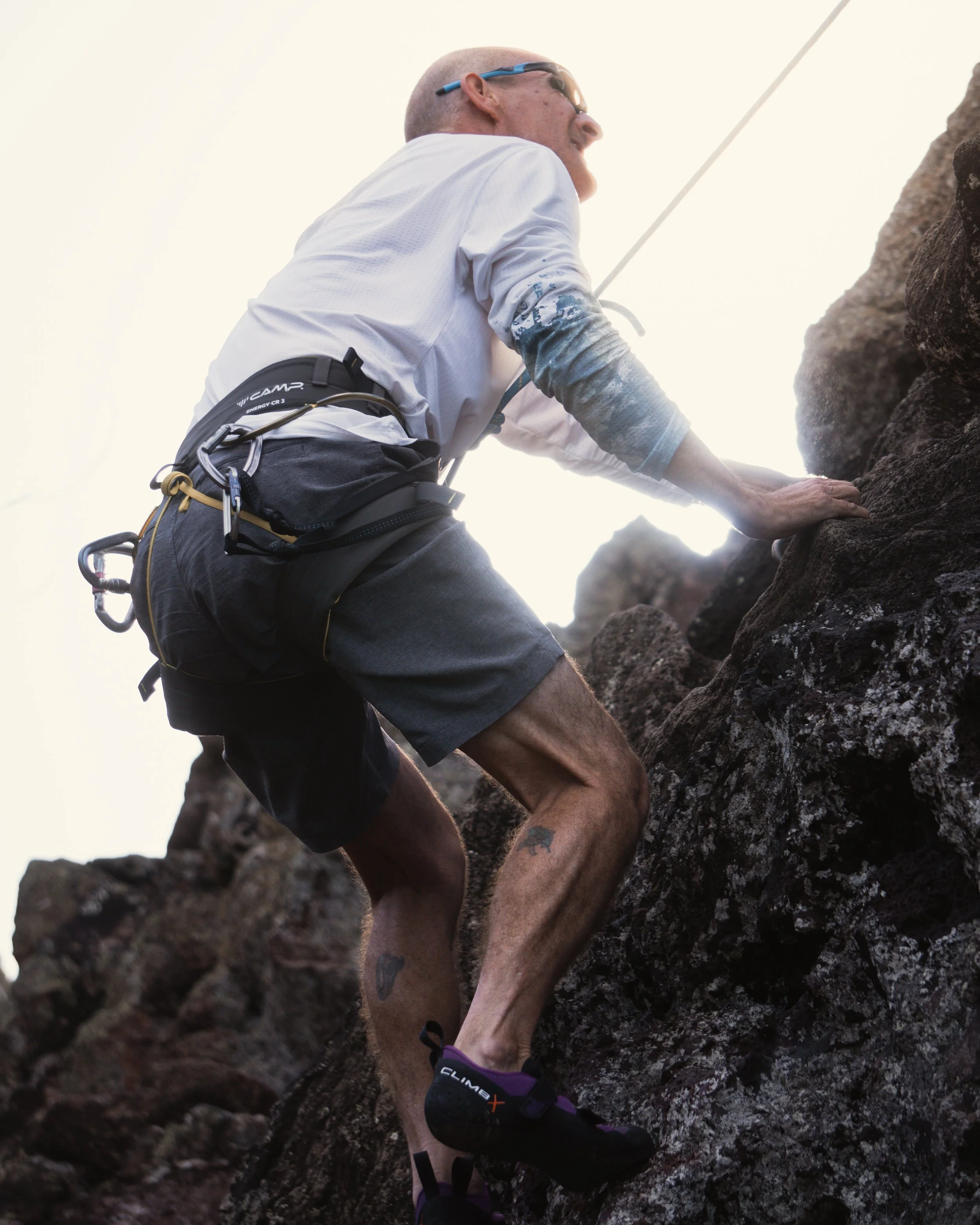 Chasing the High Line explores the quiet intensity of climbing—where each move is both a calculation and a leap of faith. This series focuses less on the summit and more on the spaces in between: the reach, the pause, the breath held in tension. The “high line” becomes a metaphor for that mental edge climbers walk, suspended between trust and fear, earth and air. Through natural light and raw environments, the images aim to reflect the honesty of the climb and the connection between body, stone, and stillness.